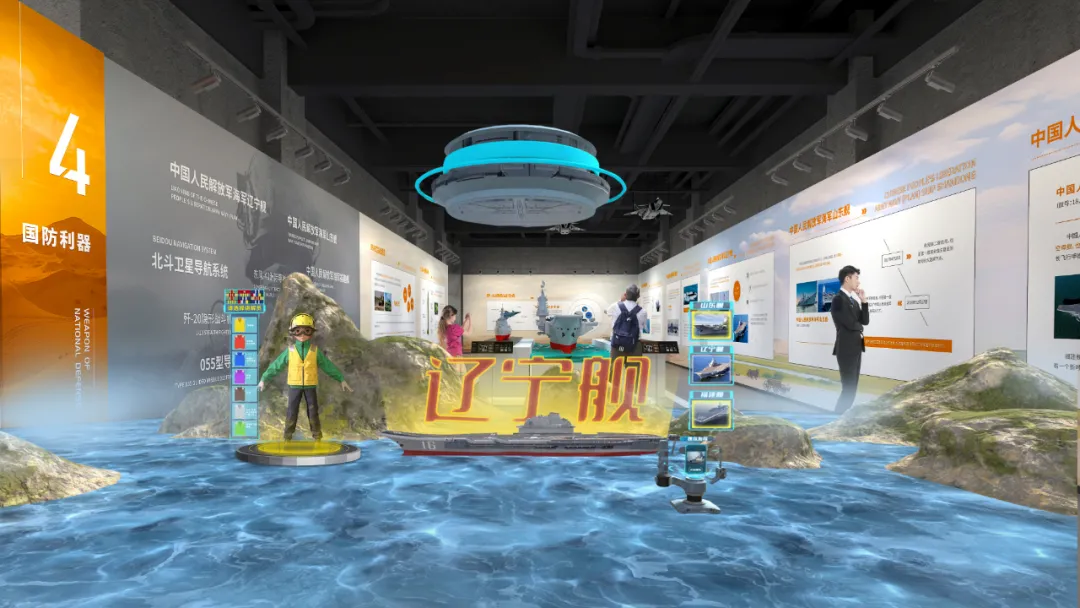 2、多主题场馆建设。根据宝丰县的教育需求和文化特色,博乐信息协助设计并建设了五个主题场馆:智慧党建、安全教育、航空航天、国防教育,每个主题都结合了宝丰的特色,并通过元宇宙技术展示了相关领域的知识和文化,让枯燥的内容变成一个个可感知的场景。